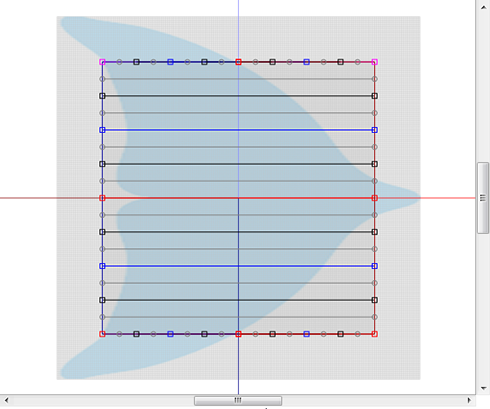 Rearrange the control points, as shown in the following figure. Please arrange the two red square control points on the certainly red axis line (yellow area).