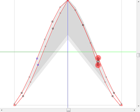 Choose the two control points of the red area of the following figure.