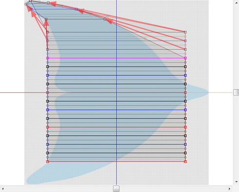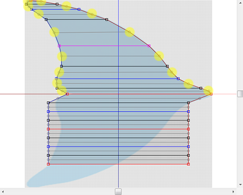 Rearrange the control points, as shown in the following figure. Please arrange the two red square control points on the certainly red axis line (yellow area).