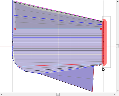 As shown in the following figure, rearrange the eight control points. Rearrange the control points of the bow and the stern on the red line.